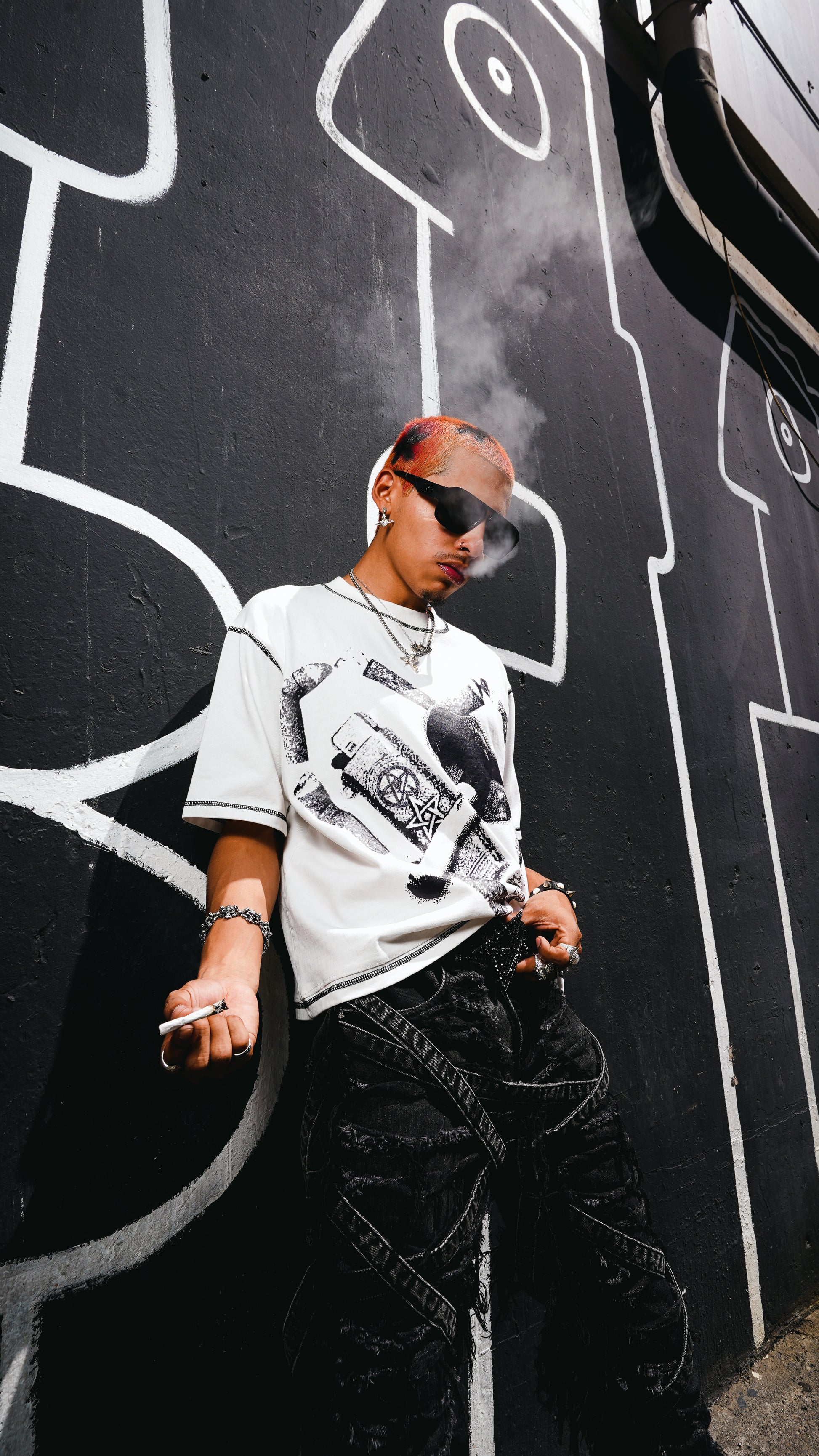 Dying 2 Live Contrast Stitch Tee - White
