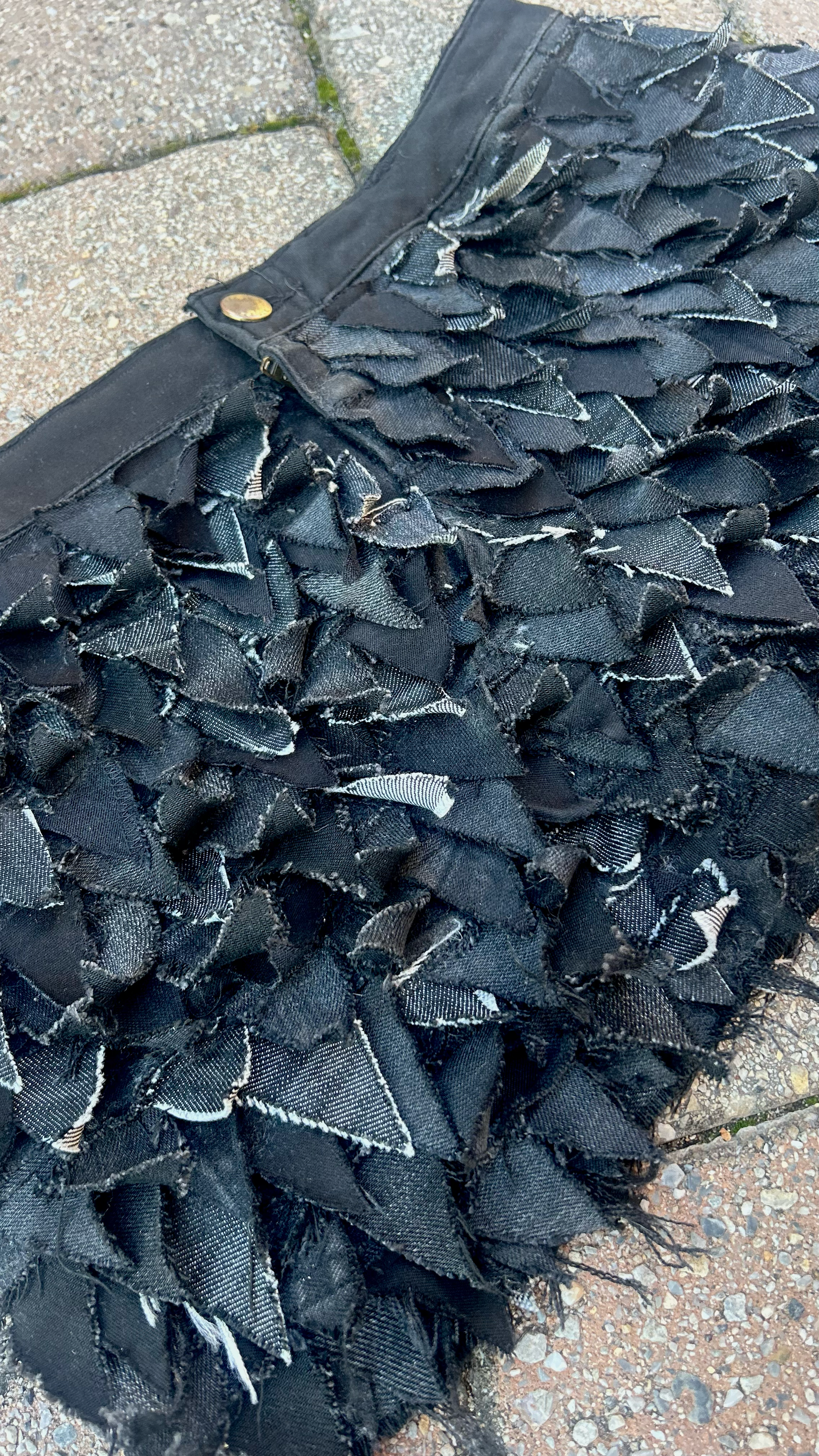 - crafted using dark wash denim scraps
